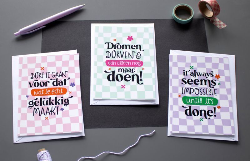 1. ‘Dromen, durven en dan alleen nog maar doen!’ een positieve en bemoedigende ‘go for it’-kaart;